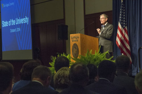 He announced the creation of a Center for Big Ideas, which will be led by former West Virginia Gov. Gaston Caperton. The Center will bring together faculty, staff and students to tackle issues, such as energy, rural health, STEM education and arts and culture, that relate to West Virginia and the country.